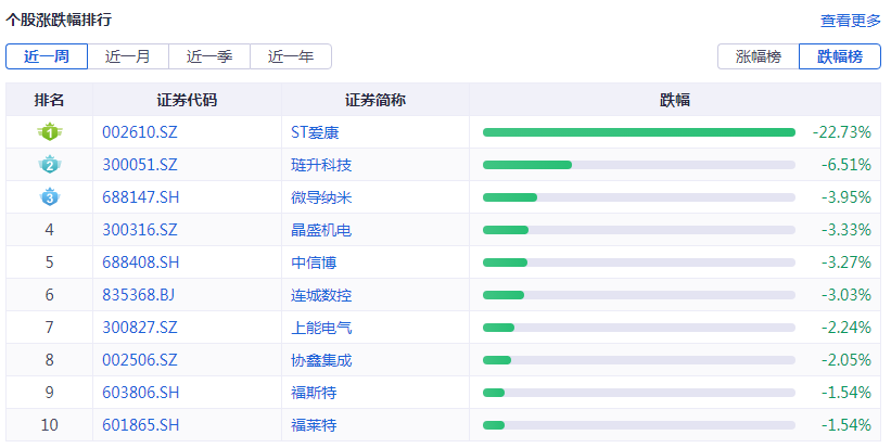 个股涨跌幅