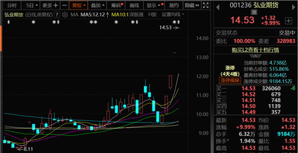 热门板块方面,多元金融板块继续走强。弘业期货4连板,爱建集团3连板,瑞达期货、永安期货、南华期货等跟涨。