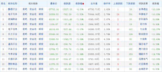 今天股市的色调,可谓一片惨绿。两市板块多数走低,半导体、酿酒板块领跌,整体跌幅超4%。最典型的就是酿酒板块大跌,其中白酒是今天A股最大砸盘者,比如舍得酒业惨遭跌停。昨日强势的半导体芯片板块也是领跌两市,瑞芯微跌停,富瀚微、芯海科技、欧比特跟跌。