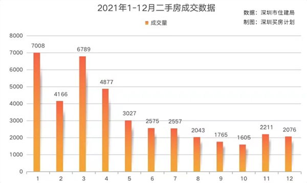 深圳住建局数据显示,1月深圳二手商品住宅仅成交1557套,低于2021年